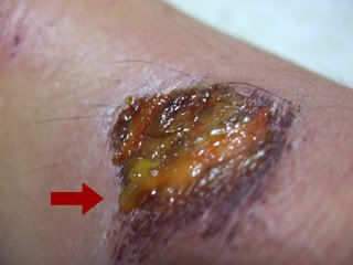 | | the wound has degenerated into a mass of pseudo-necrotic cells with pus in a deeper shade of yellow. i've even highlighted the viscous, translucent pus secretion for your viewing pleasure. enjoy! :) Labels: nondescript